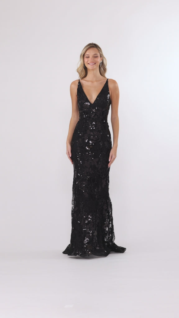 "Brielle" Sequin V-Neck Floor Length Dress