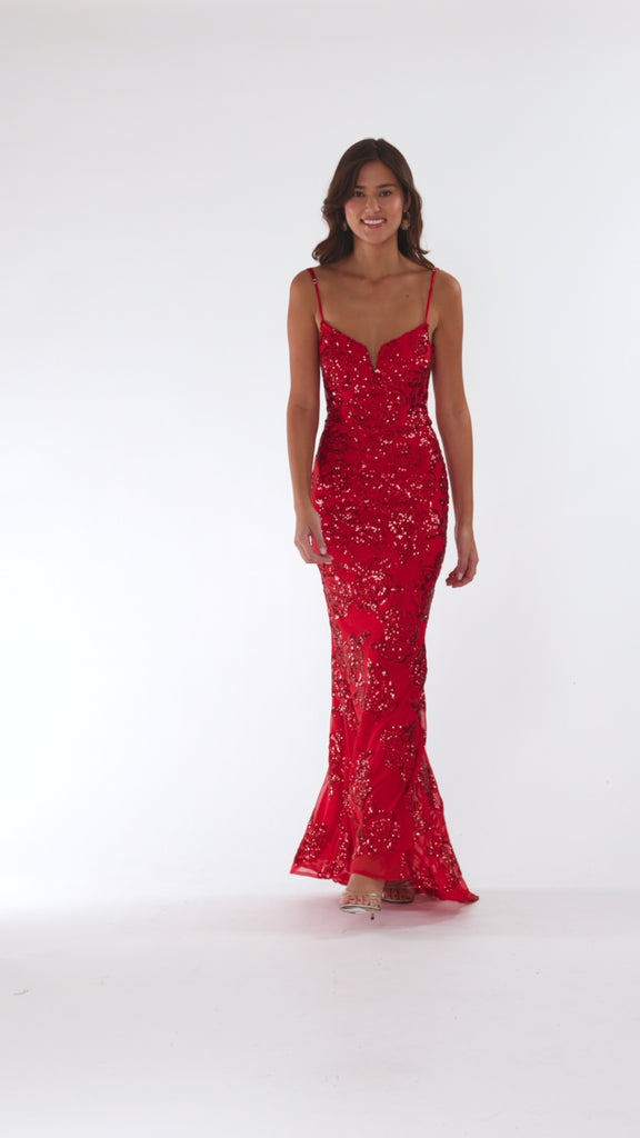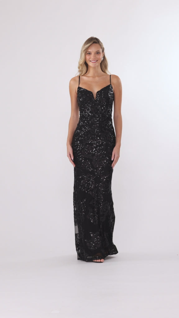 "Roxanna" Sequin Rose Pattern Floor Length Dress